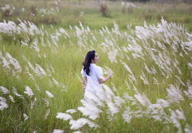 Phong cách nhẹ nhàng: Những bộ váy màu trắng, be hoặc tông màu pastel sẽ cực kỳ phù hợp với sắc trắng của cỏ lau, tạo nên vẻ ngoài thanh thoát.