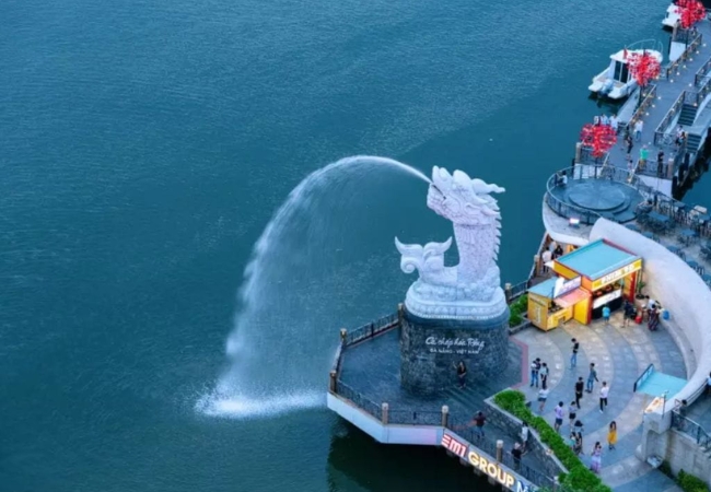 Một cách di chuyển độc đáo khác chính là trải nghiệm du thuyền trên sông Hàn. Nhiều tour du thuyền đêm thường có lịch trình dừng lại hoặc đi ngang qua bến tàu để du khách ngắm nhìn tượng Cá chép hóa rồng Đà Nẵng từ giữa dòng sông. Góc nhìn từ mặt nước hướng lên bệ tượng cao lớn sẽ mang lại sự choáng ngợp và một cảm giác hoàn toàn khác biệt so với việc đứng trên bờ.